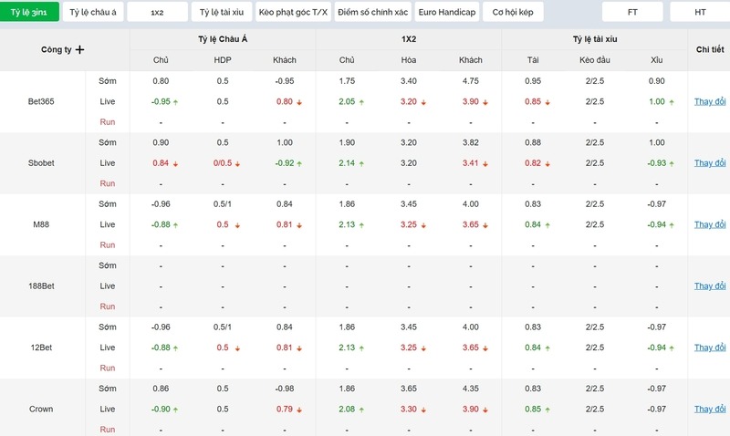 - Theo dõi biến động kèo trước giờ bóng lăn